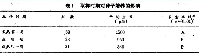 用0.1%升汞水溶液將果實表面消毒10分鐘,無菌水沖洗3~5次,于無菌條件下肺剖出種子,在培養(yǎng)基上培養(yǎng)。所用基本培養(yǎng)基為MS+5%蔗糖十0.6%瓊脂十LH100ppm.