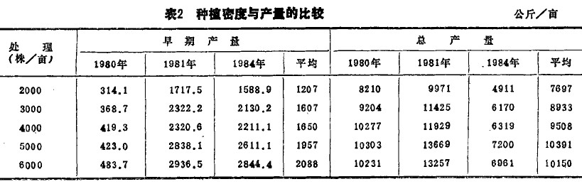 可見,在生育初期適當(dāng)密植,由于個體間的互相競爭較少,能夠充分發(fā)揮個體優(yōu)勢,群體產(chǎn)量高,收入增加。在盛收期間:盡管密植〔每畝5000株)對個體影響較大,但由于單位面積上的株數(shù)增加,所獲得的群體效益補償了個體的損失,總產(chǎn)量亮,經(jīng)濟效益好。只有當(dāng)密度過大(每畝6000株以上),葉面積超過一定范圍,光照過弱,單位葉面積的光合能力下降幅度過大時,群體效益與經(jīng)濟效益才會受到影響.