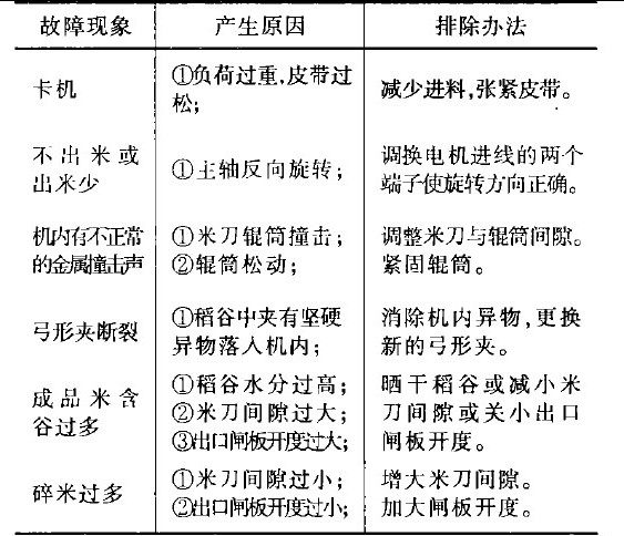 ①米篩進(jìn)料段容易磨損,可將米篩經(jīng)常調(diào)頭使用以延長(zhǎng)米篩的使用壽命。②軸承要定期加注黃油。