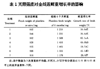 一、光照強(qiáng)度對金線蓮鮮重增長的影響