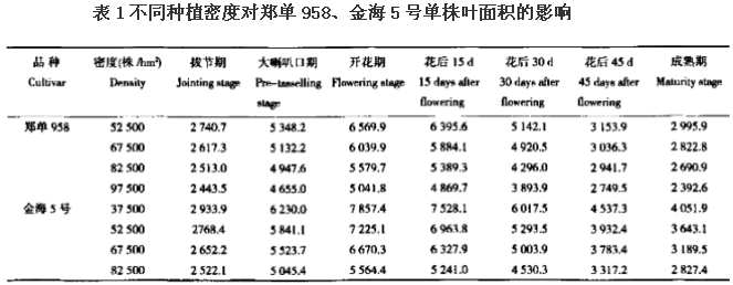 一、陰雨寡照條件下種植密度對玉米葉面積的影響