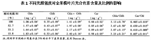 研究光照強(qiáng)度對(duì)金果欖葉片光合色素含量有何影響