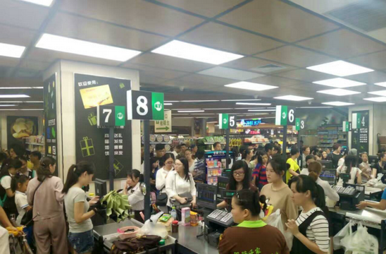 10月17日晚,?谑忻褚?yàn)榧磳⒌顷懙呐_(tái)風(fēng)“莎莉嘉”大肆囤貨,?谝怀袃(nèi)眾多市民排隊(duì)結(jié)賬。?谑忻窆﹫D