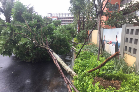 10月18日上午,海南陵水街頭的樹木被狂風(fēng)拔起。?谑忻窆﹫D
