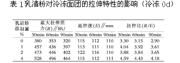 一、乳清粉對面團冷凍期間拉伸性能的影響
